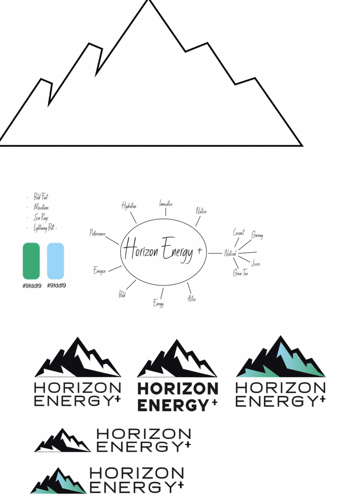 Horizon Energy+ is a clean, natural energy drink designed for health-conscious, active individuals. Using ingredients like green tea extract, coconut water, ginseng, and real fruit juices, the brand differentiates itself from typical energy drinks filled with artificial additives. This project built a modern identity and packaging system to communicate purity, performance, and premium quality. The result was a cohesive, premium packaging system that reinforced the brand’s core message: Pure. Natural. Peak.